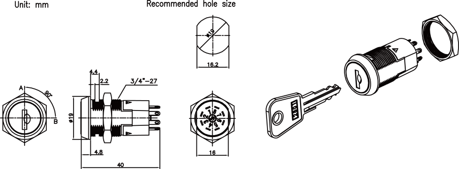 发布时间://点击次数:所属栏目:Product > Keylock switch > UL certified switch lock